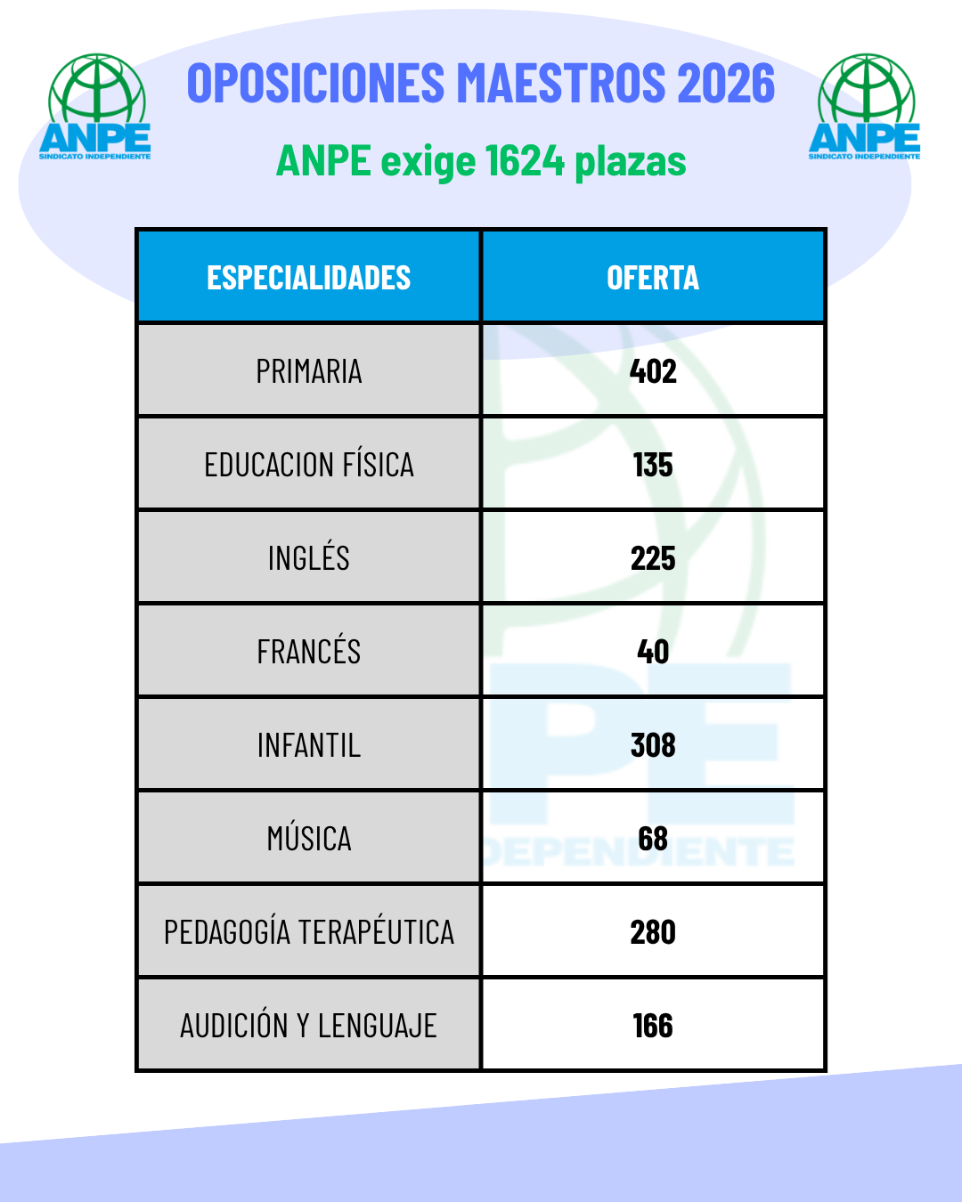 NUEVAS OPOSICIONES 2026- ANPE EXIGE OFERTA RÉCORD 1624 PLAZAS
