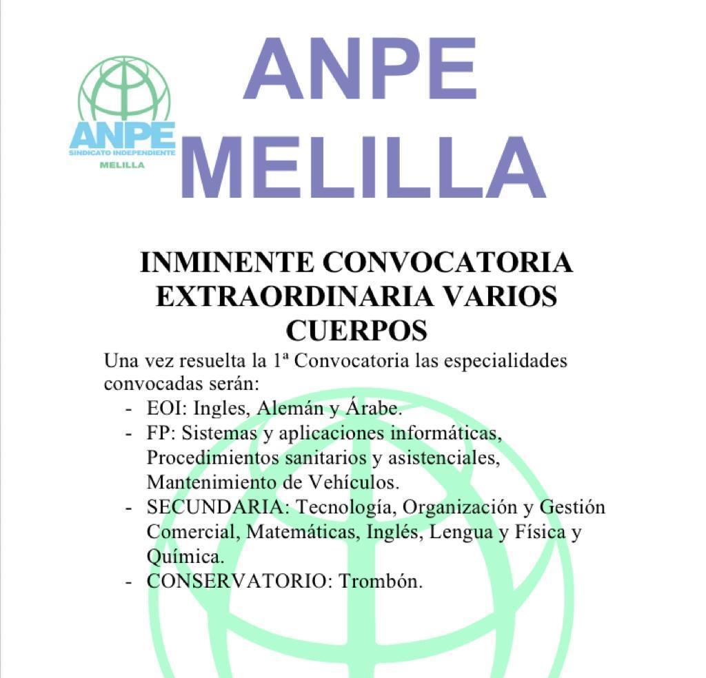 Ceuta y Melilla 21 Jun, 2021Concursillo para funcionarios en Expectativa de destino para solicitar puestos para el curso próximo.