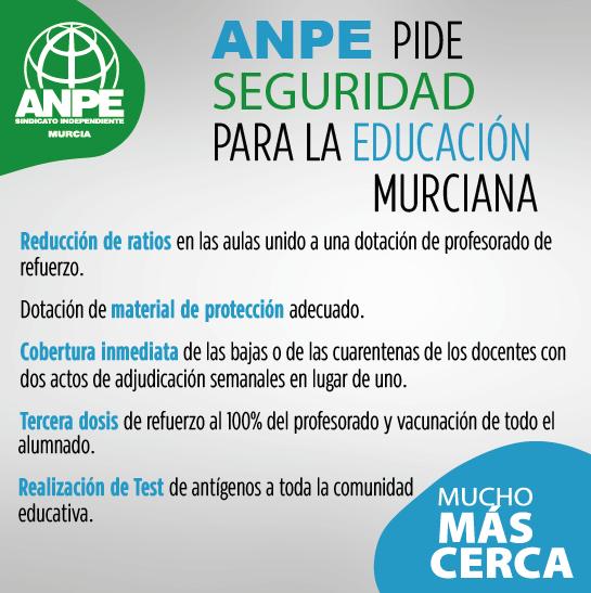 Murcia 23 Sep, 2022ANPE RECHAZA EL NUEVO CRONOGRAMA DE LOS ACTOS DE ADJUDICACIÓN SEMANALES DEL PROFESORADO INTERINO